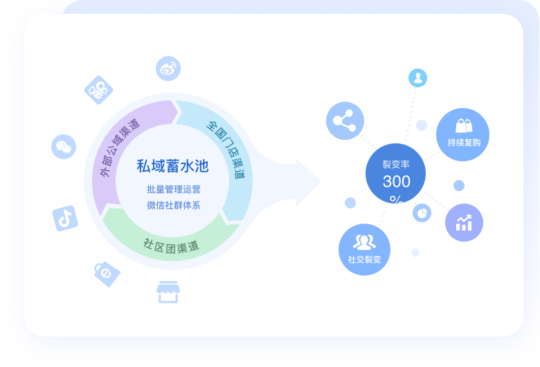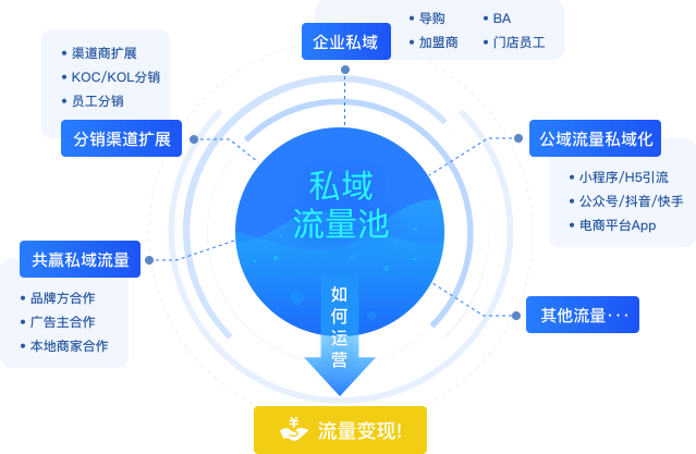 私域用户生命周期管理,通过企业服务提高用户消费频率,将单一服务变成多种业务服务;
