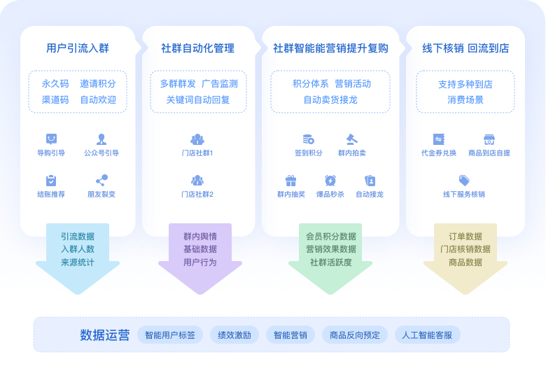 超市,美妆,母婴连锁等社群会员深度运营,通过自动化运营与营销活动,提升交易额与到店率;